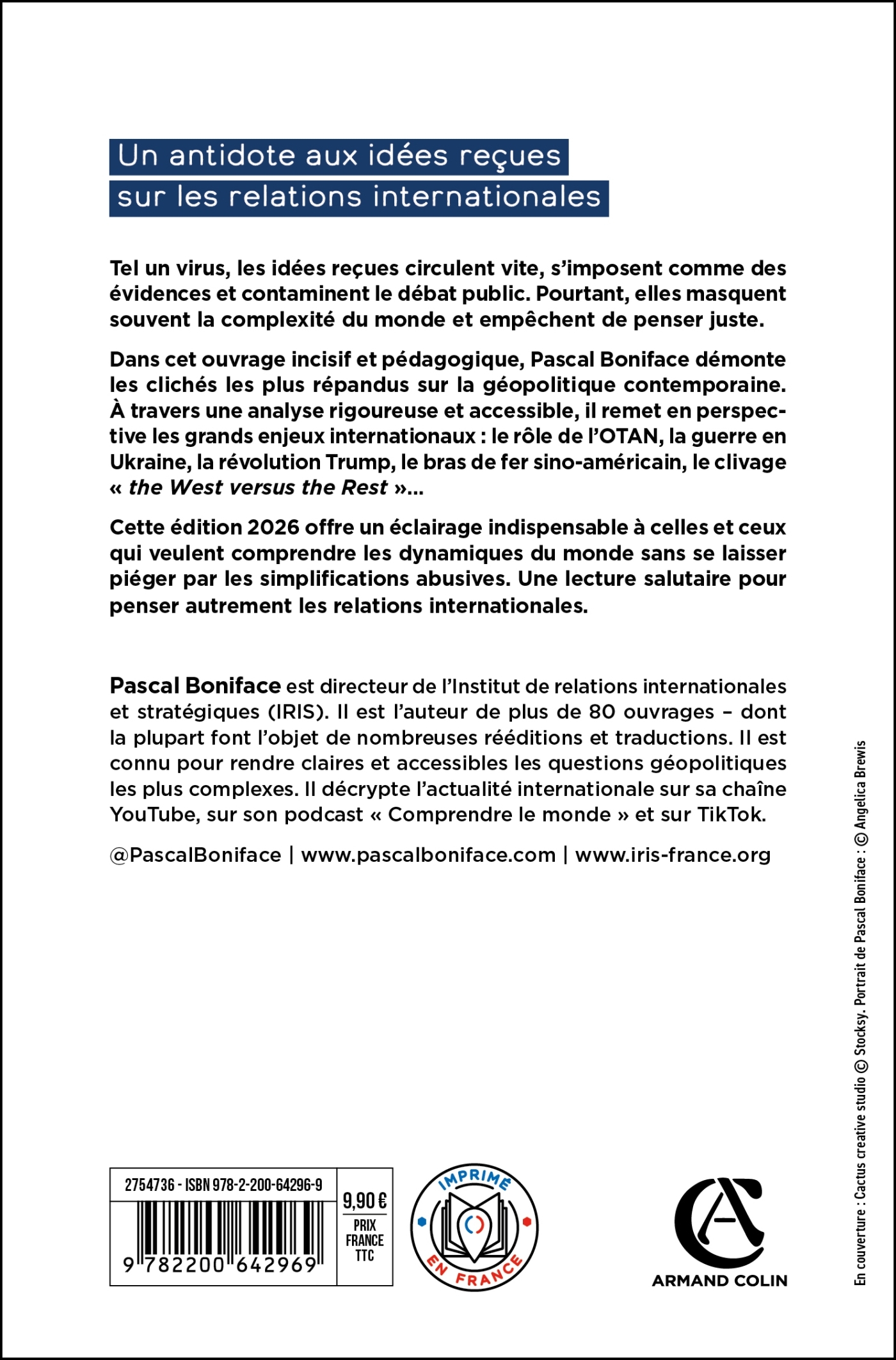 Un antidote aux idées reçues sur les relations internationalesTel un virus, les idées reçues circulent vite, s’imposent comme des évidences et contaminent le débat public. Pourtant, elles masquent souvent la complexité du monde et empêchent de penser juste.Dans cet ouvrage incisif et pédagogique, Pascal Boniface démonte les clichés les plus répandus sur la géopolitique contemporaine. À travers une analyse rigoureuse et accessible, il remet en perspective les grands enjeux internationaux : le rôle de l’OTAN, la guerre en Ukraine, la révolution Trump, le bras de fer sino-américain, le clivage « the West versus the Rest »…Cette édition 2026 offre un éclairage indispensable à celles et ceux qui veulent comprendre les dynamiques du monde sans se laisser piéger par les simplifications abusives. Une lecture salutaire pour penser autrement les relations internationales.