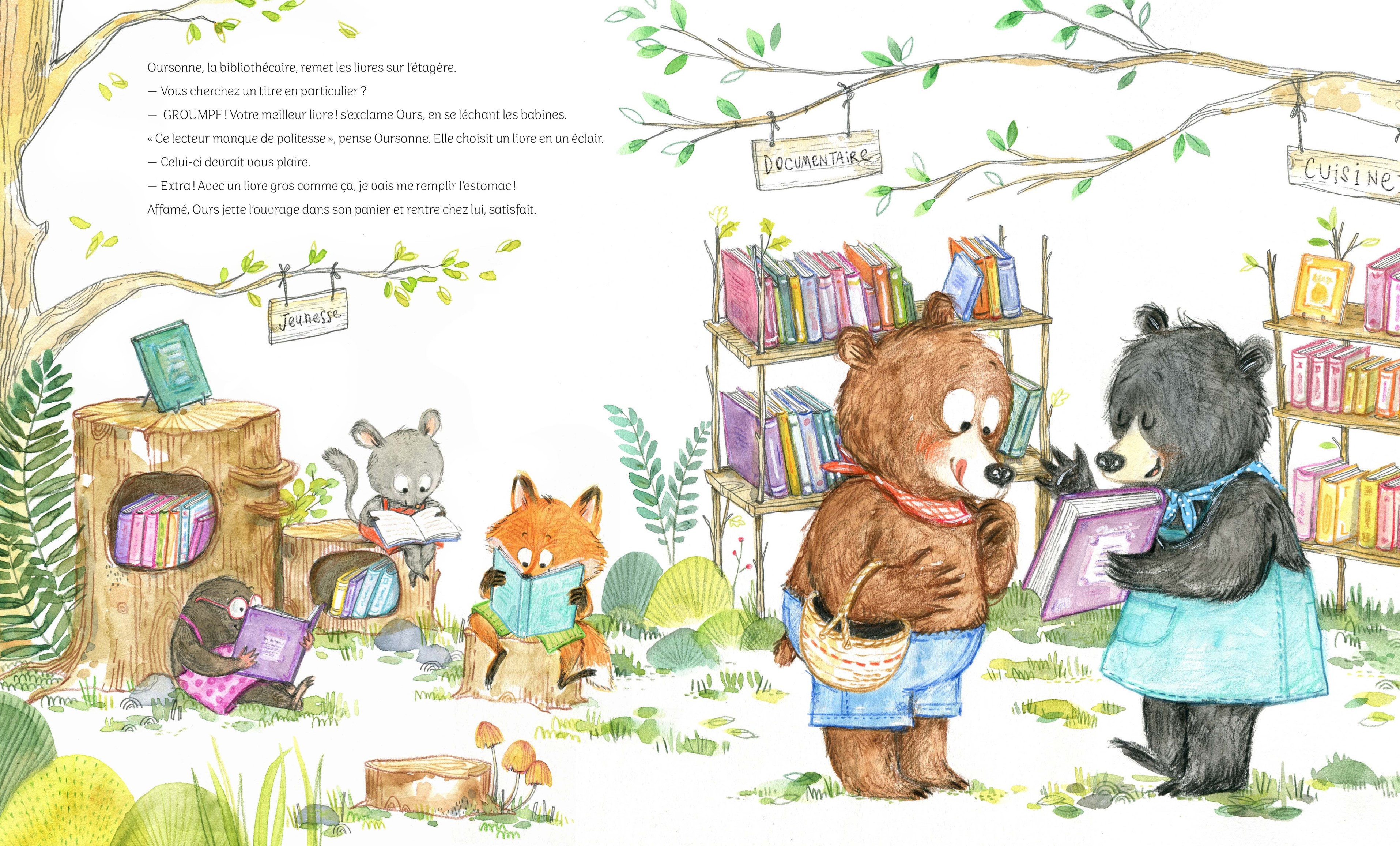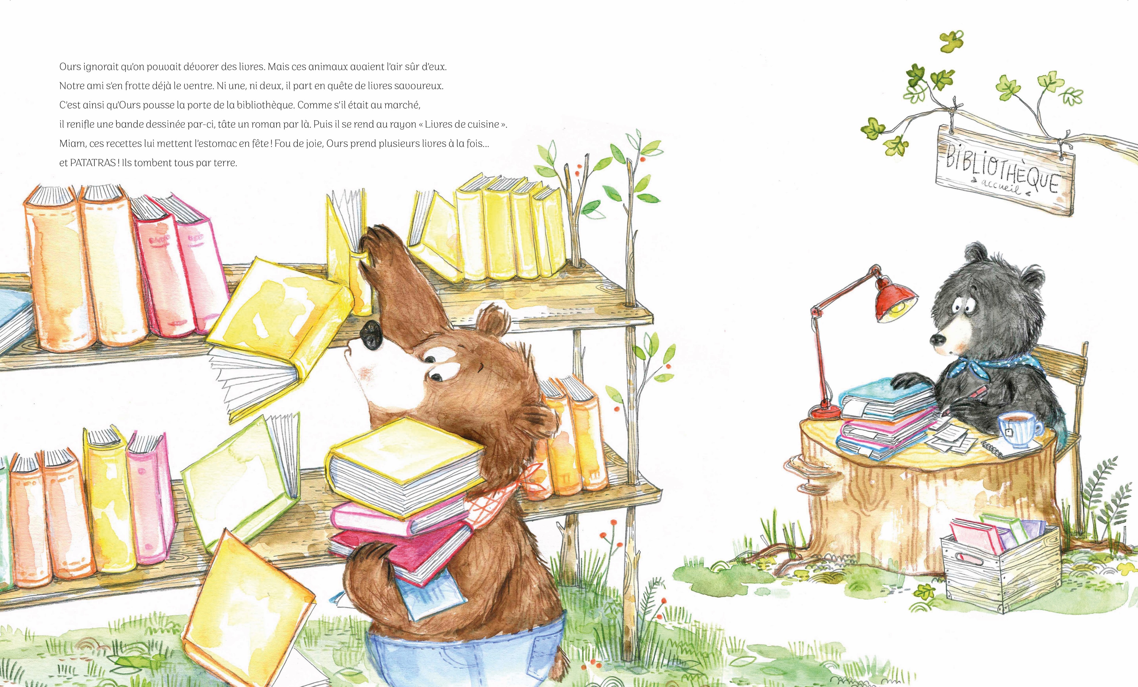 Ni une, ni deux, il file à la bibliothèque en quête de livres savoureux !