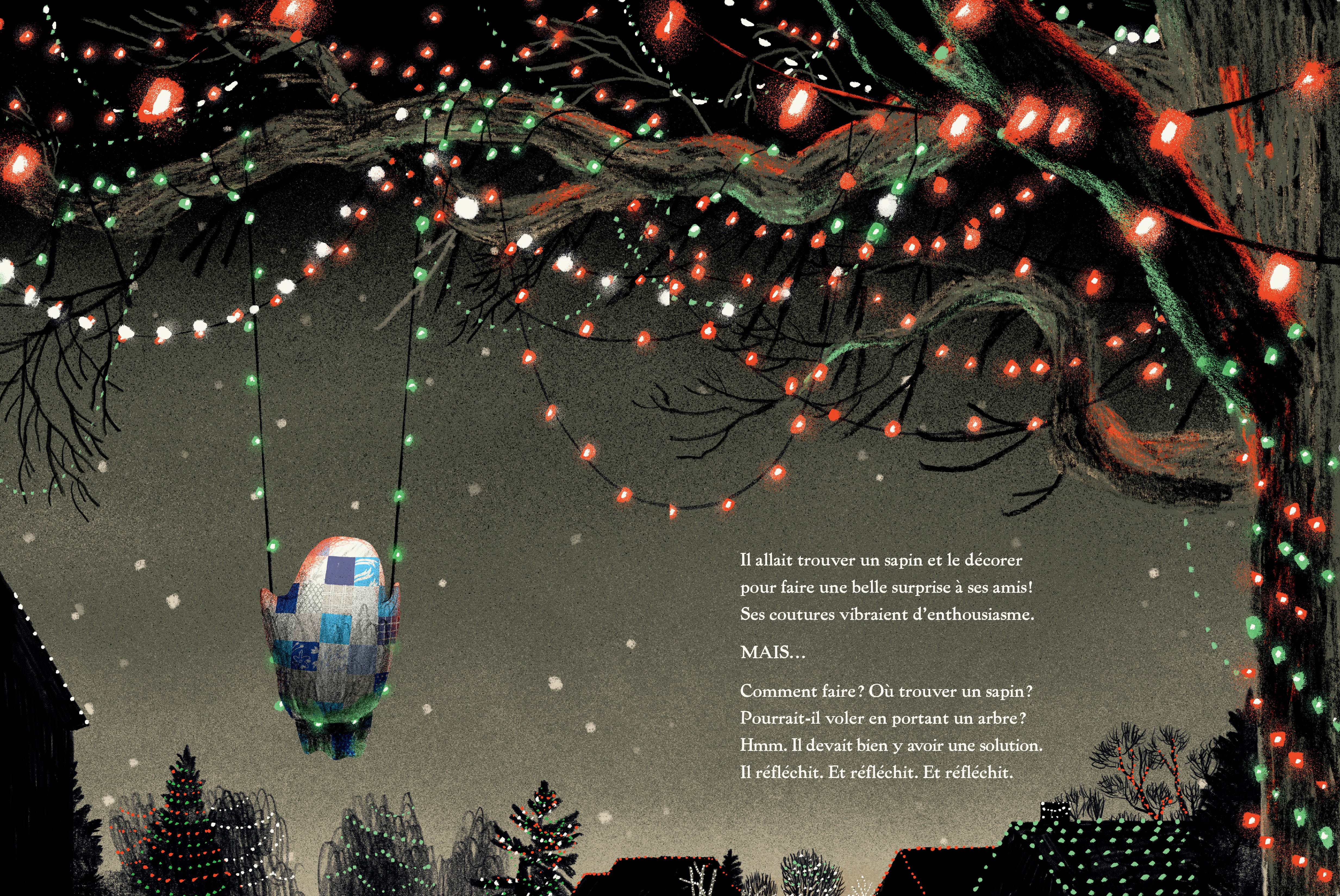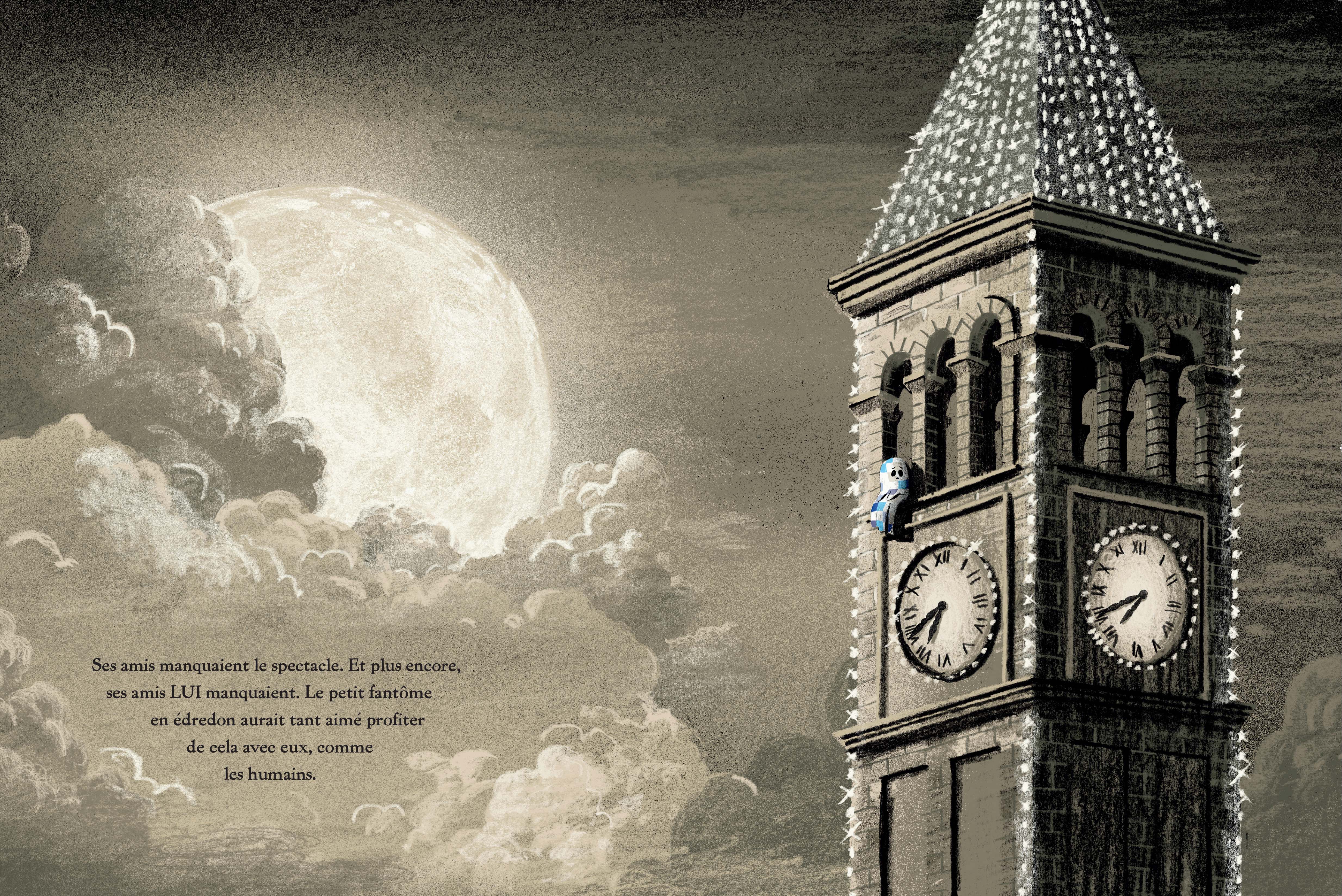 Lors d'une de ses virées glacées, le petit fantôme en édredon découvre qu'il se passe quelque chose d'extraordinaire chez les humains... Ils accrochent des lumières partout et une atmosphère de fête règne dans les rues. C'est si beau, et si chaleureux ! Mais le petit fantôme ne peut partager cette magie avec ses amis. Et s'il apportait la magie jusqu'à eux ?