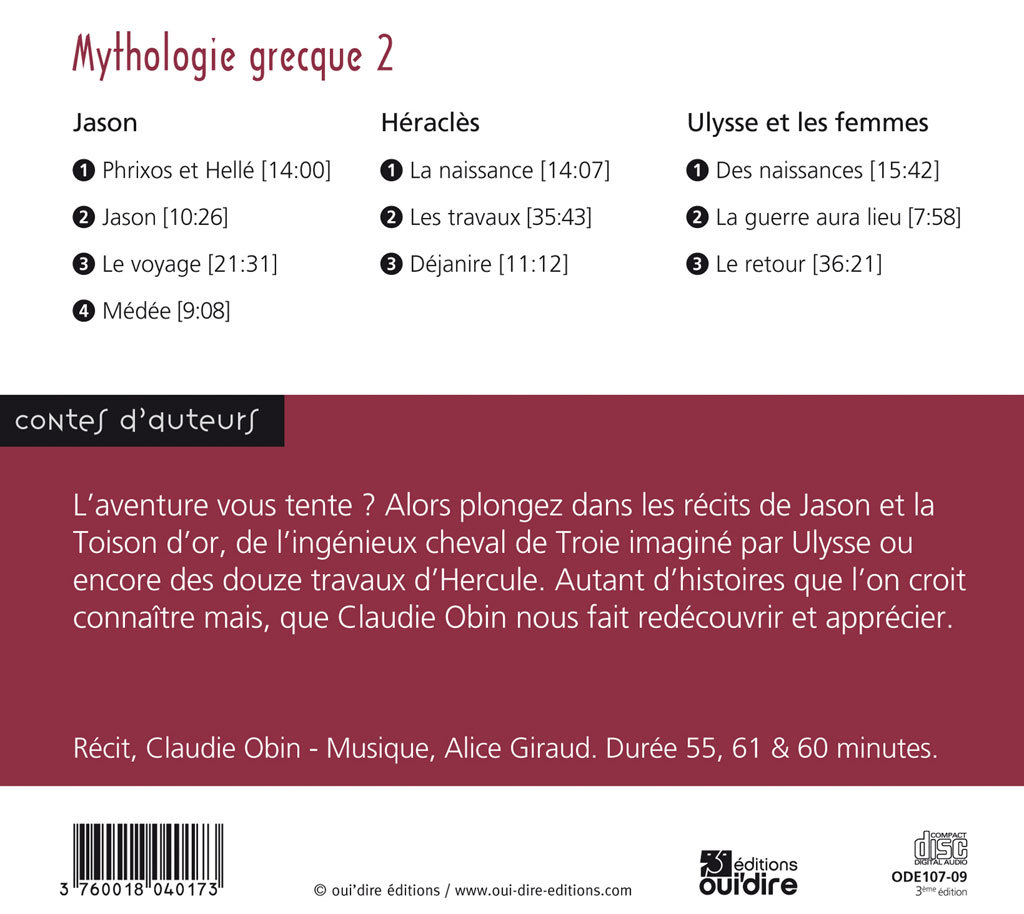 L'aventure vous tente ? Alors plongez dans les récits de Jason et la Toison d'or, de l'ingénieux cheval de Troie imaginé par Ulysse ou encore des douze travaux d'Hercule. Autant d'histoires que l'on croit connaître mais que Claudie Obin, nous fait redécouvrir et apprécier.