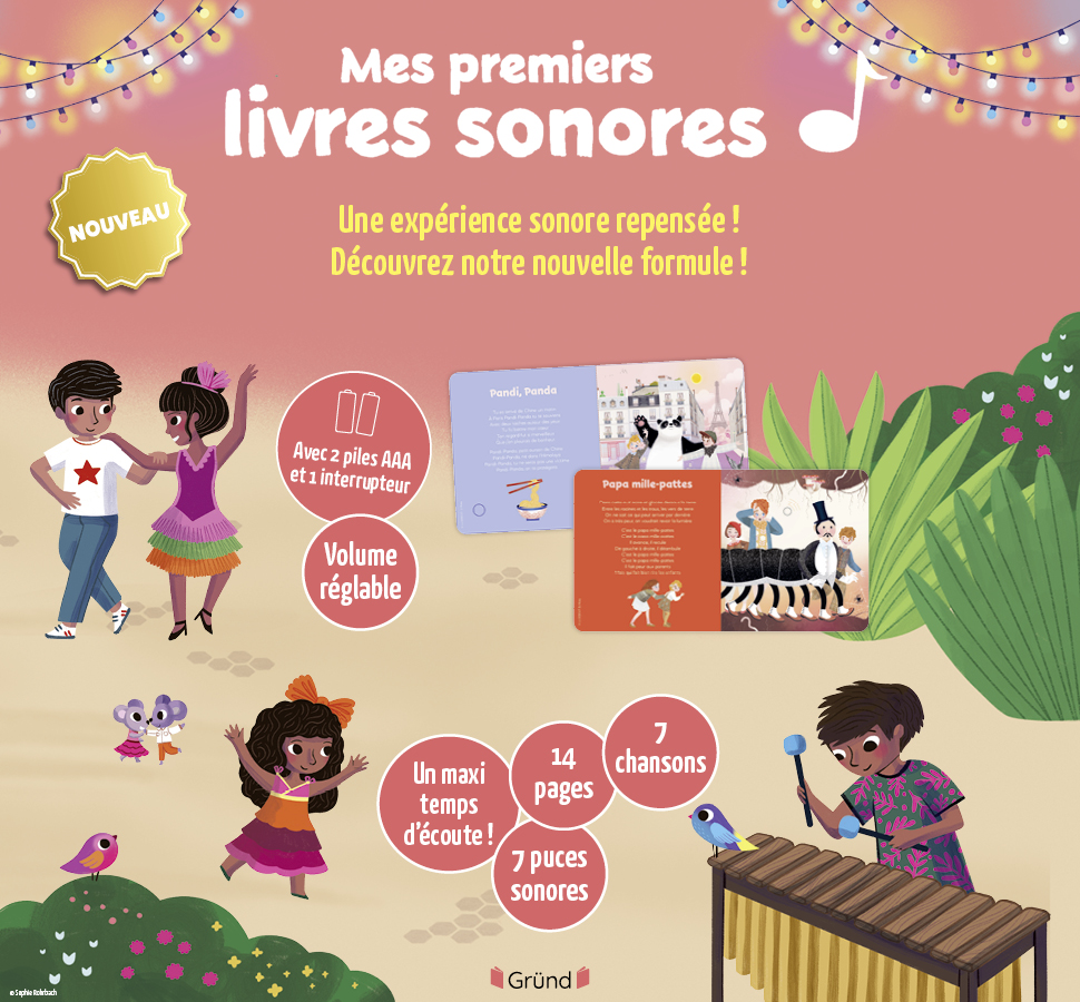 Avec ses puces sonores musicales, ce recueil est unique. Sur chaque page, l'enfant recherche dans l'illustration le petit bouton qui déclenchera la musique.