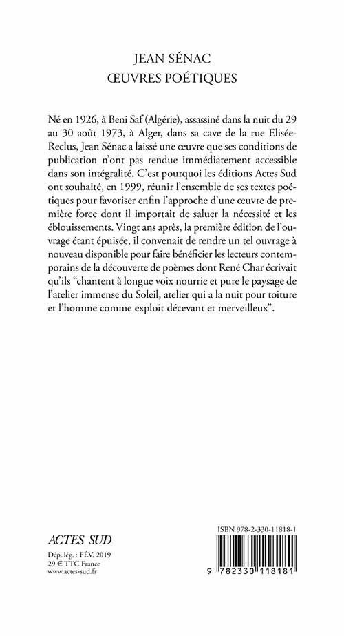 À nouveau disponible, l'édition complète des textes du grand poète français qui opta pour une nation algérienne et dont l'oeuvre, solaire et protéiforme, demande aujourd'hui plus que jamais à réintégrer sa juste place dans la littérature de ce siècle.