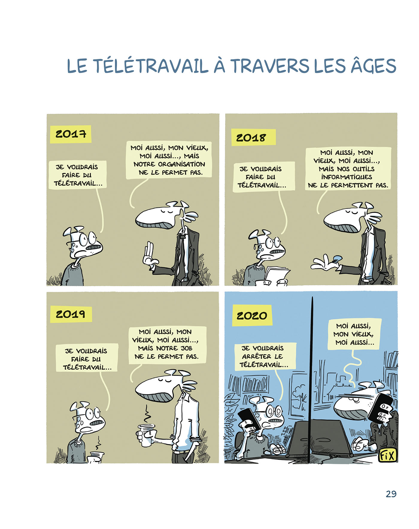 Dessinateur de talent et consultant repenti, François-Xavier Chenevat, dit Fix, sévit dans différents titres de presse, anime des séminaires et écrit des livres pleins d'animaux en costume. Il a publié chez le même éditeur
