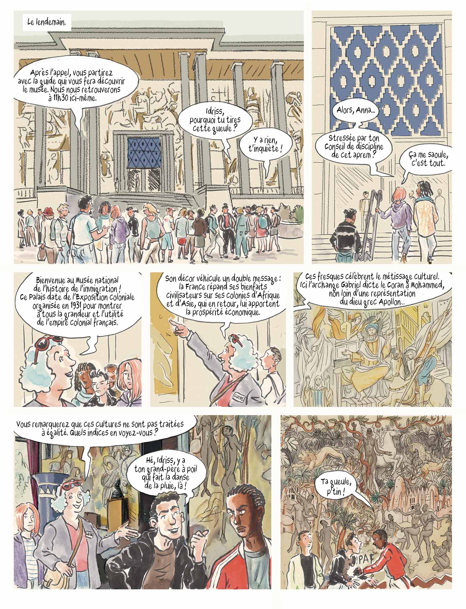 Deux adolescents égarés dans un musée explorent, à travers neuf récits d'exil, l'histoire migratoire française. Un album réalisé en partenariat avec le Palais de la Porte Dorée - musée national de l'Histoire de l'immigration.