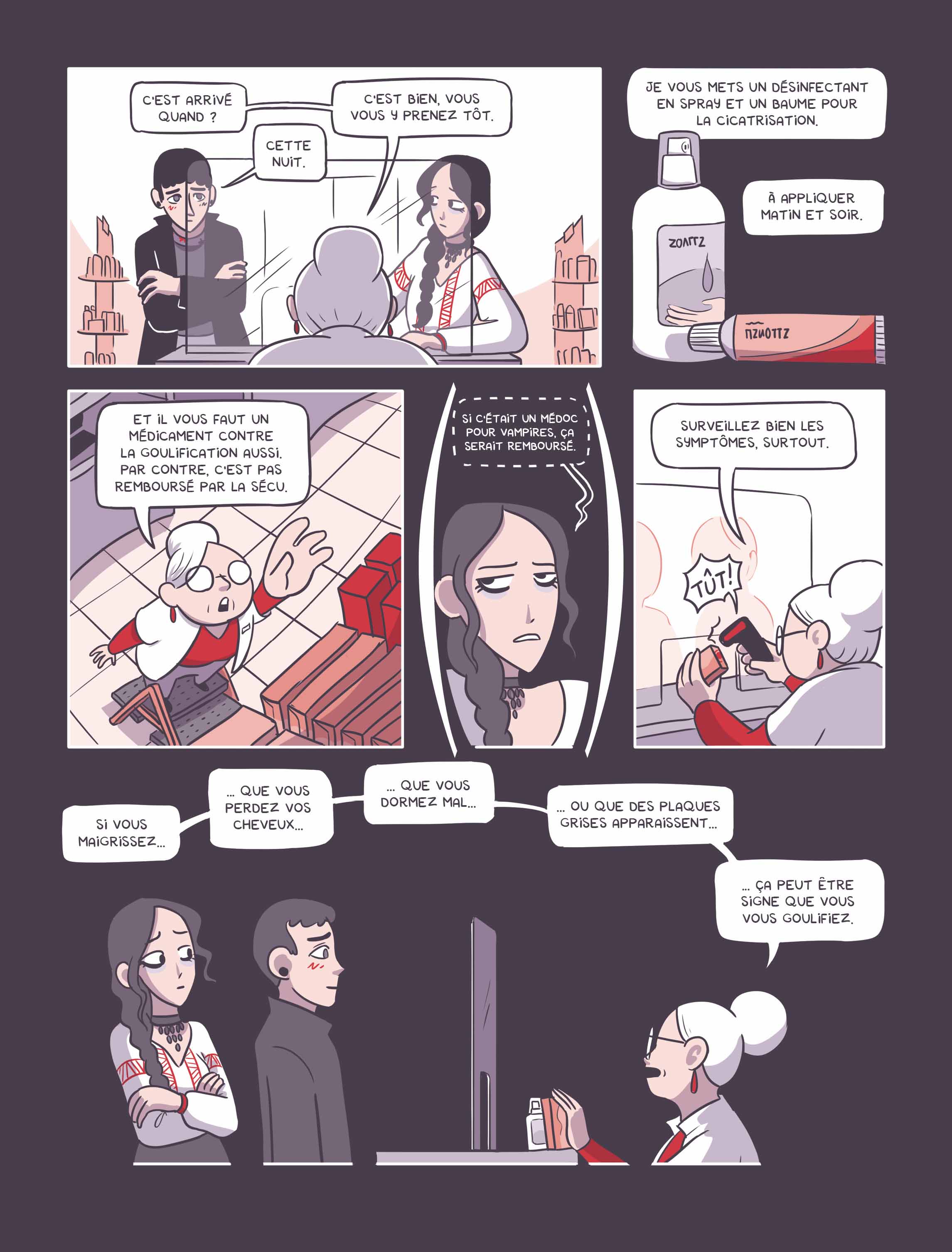 En Transylvanie, pays de vampires, trois colocs humains luttent entre morsures, militantisme et secrets amoureux. Le nouveau roman graphique de Lou Lubie.