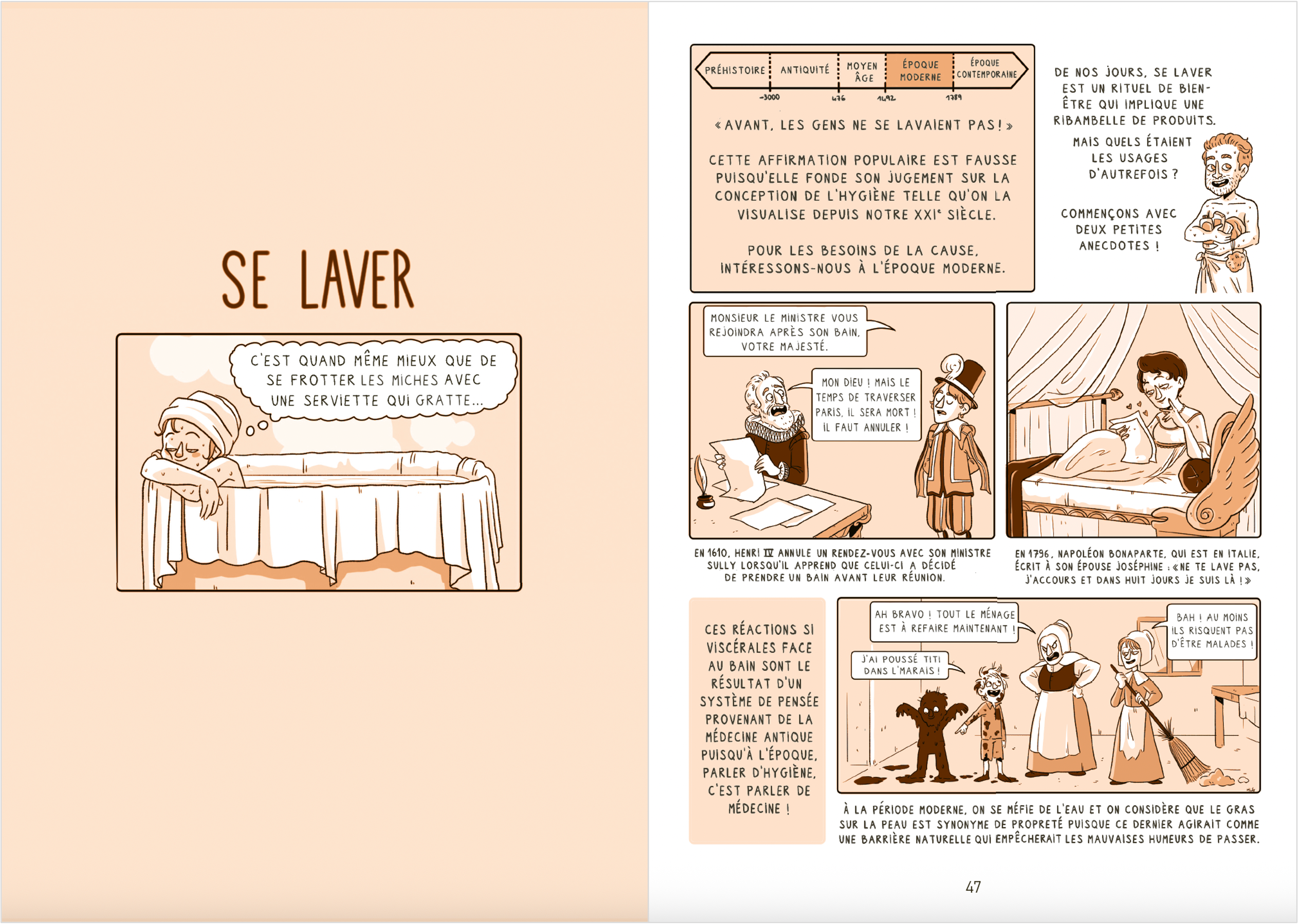 UNE BD DÉCOMPLEXANTE SUR LES ORIGINES DES NORMES ET INJONCTIONS QUE L'ON IMPOSE À NOTRE CORPS.Pourquoi cracher est-il mal vu ? Pour quelle raison le bronzage est-il devenu désirable ? Depuis quand urine-t-on assis ?Si vous pensez que manger, dormir, rire, suer, avoir ses règles... sont des événements naturels, cette bande dessinée aussi drôle qu'érudite va vous étonner ! Préparez-vous à remonter le temps avec l'historien Laurent Turcot pour explorer une histoire insensée : celle de notre corps ! Des tatouages à l'insomnie, en passant par la médecine, la sexualité ou le sport, découvrez comment notre corps s'est (ré)inventé au fil des siècles, et décryptez les constructions sociales à l'oeuvre dans nos gestes les plus quotidiens. Cette fresque haute en couleur, portée par le trait vif et l'humour irrévérencieux d'Héloïse Le Glaunec, vous dévoile les secrets les plus inavouables de notre anatomie... et montre qu'en matière de poils, de beauté ou de politesse, rien n'est jamais vraiment naturel !La première histoire du corps en BD, comme vous n'aviez jamais osé l'imaginer !Préface de Benjamin Brillaud, alias Nota Bene, vulgarisateur et créateur de la chaîne YouTube suivie par plus de 2,6 millions d'abonnés.« Un formidable voyage temporel. » Nota Bene« Le dessin est joyeusement précis et clair, tout comme le propos est juste. Le corps dans toute sa splendeur ! » Le Devoir« De quoi satisfaire l'appétit de bien des curieux. » Les Coops de l'information« Une exploration ludique autour des perceptions, usages et tabous du corps humain à travers l'histoire. Captivant ! » Les libraires
