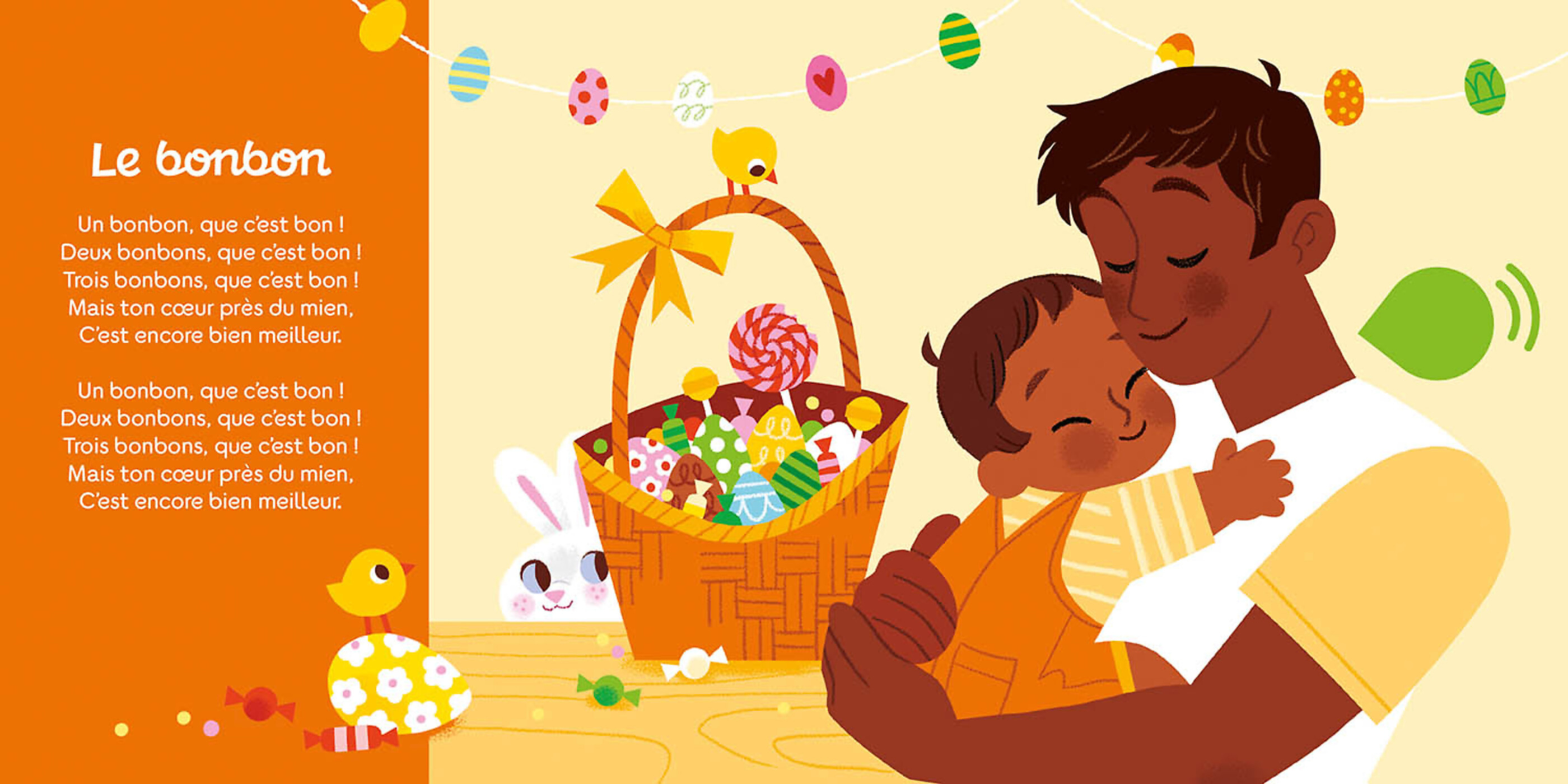 Un livre sonore pour s'initier au rythme et découvrir l'univers de Pâques, avec des comptines courtes et entraînantes, faciles à mémoriser.