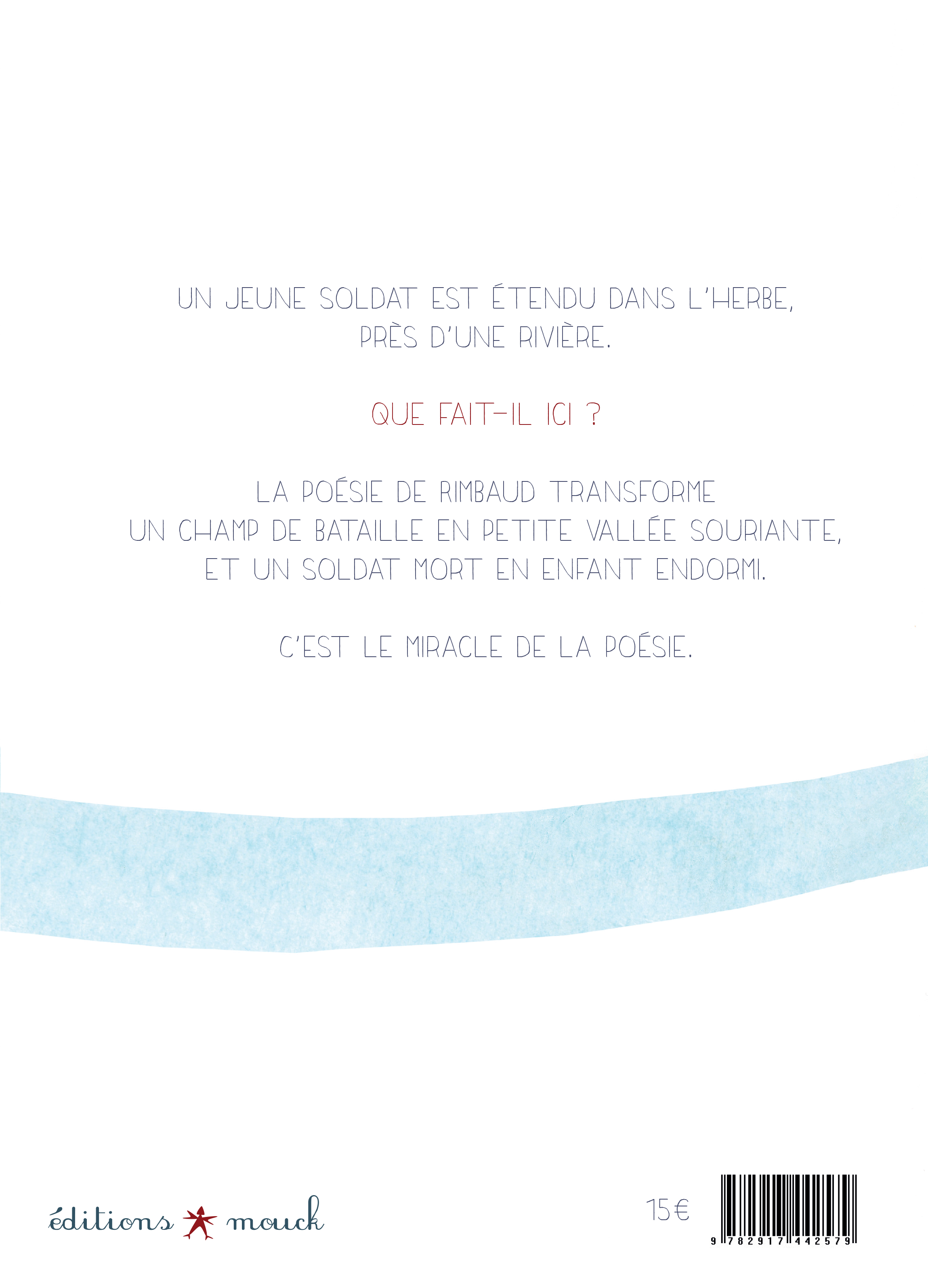 Le seul manuscrit connu de ce poème date d'octobre 1870. Arthur Rimbaud a 16 ans. Sans doute inspiré par la guerre franco-prussienne, il dévoile ici un réel talent de metteur en scène. À la manière du zoom d'une caméra, il procède par gros plans successifs jusqu'à la dernière strophe où la réalité nous est dévoilée. Les illustrations de Lauranne Quentric respectent cette approche cinématographique et donnent au poème une « lecture visuelle » tout à fait originale.Mouck est le premier éditeur à publier « Le Dormeur du val » sous forme d'album illustré pour enfants.