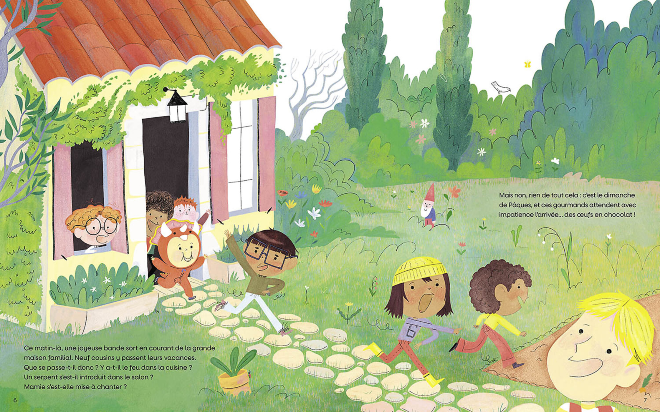 Un album sur la tradition de la chasse aux oeufs de Pâques, plein de détails et de rebondissements