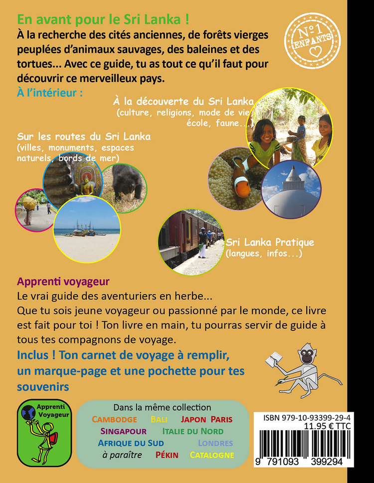 En avant pour le Sri Lanka ! Le vrai guide desaventuriers en herbe ! À la recherche des cités anciennes, de forêtsvierges peuplées d'animaux sauvages, des baleines et des tortues... Destiné auxjeunes, voyageurs ou passionnés par le monde, ce livre contient tout ce qu'ilfaut pour appréhender ce pays fascinant et servir de guide à tous ses compagnonsde voyage. Contenu : Une section pour découvrir le pays :géographie, histoire, école, us et coutumes, arts, faune et flore... Une sectionde visite du pays par thème : villes, monuments, espaces naturels, bords de mer.Une section pratique : lexique (cingalais, tamoul), infos pratiques,conseils... Les petits plus : une mise en page attractive (colorée,textes courts, nombreuses photos et illustrations), une section pour décrire sesexpériences de voyage, une pochette pour conserver ses souvenirs, un marque-pageà découper.