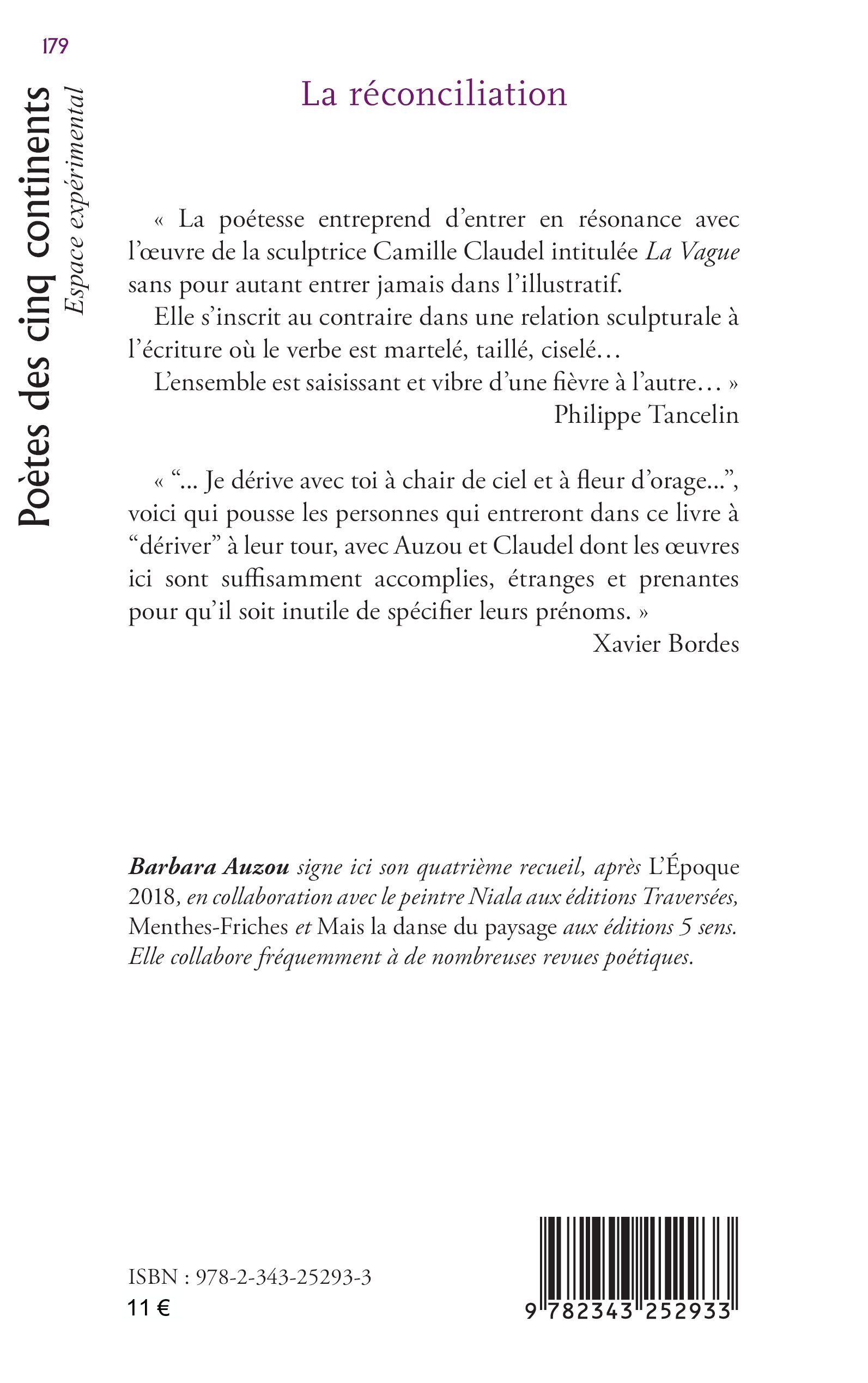 « La poétesse entreprend d'entrer en résonance avec l'oeuvre de la sculptrice Camille Claudel intitulée La Vague sans pour autant entrer jamais dans l'illustratif. Elle s'inscrit au contraire dans une relation sculpturale à l'écriture où le verbe est martelé, taillé, ciselé... L'ensemble est saisissant et vibre d'une fièvre à l'autre... » Philippe Tancelin